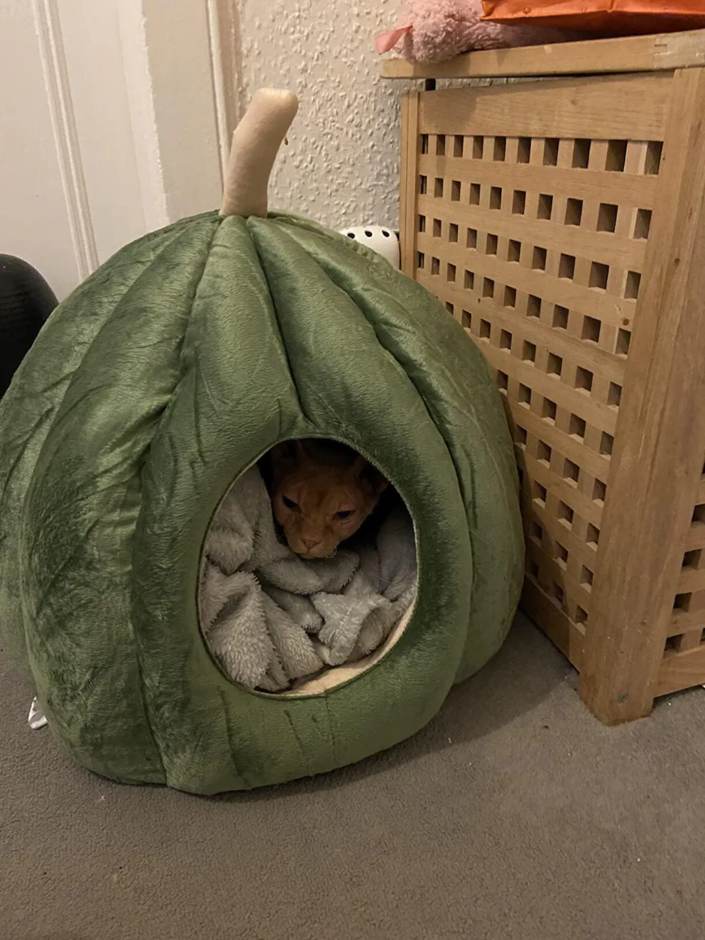 Die Kuschelhöhle in Form eines Kürbisses ist total schön und weich und wurde wirklich von Minute 1 an von meinen Katzen als Schlaf- und Rückzugsort genutzt. Megaweich ist sie auch. 1 Stern Abzug gibt es wegen der falschen Farbe, ich hatte grau bestellt und orange bekommen. Das ist aber nicht weiter schlimm.